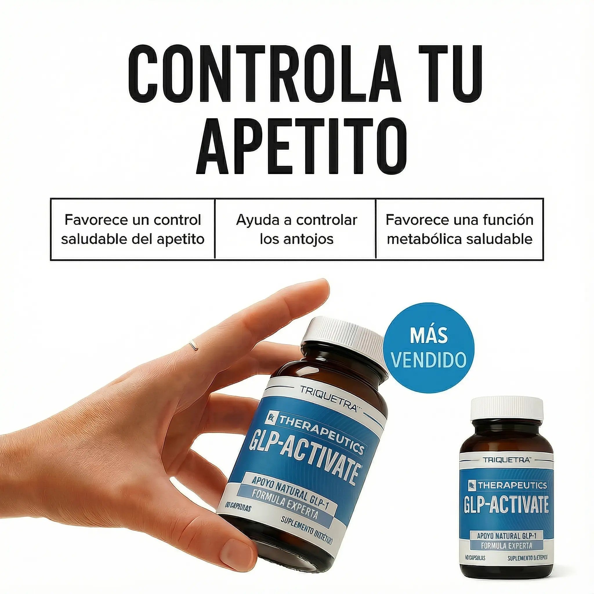GLP Activate es un suplemento nutricional diseñado para apoyar naturalmente la producción de GLP‑1, una hormona del cuerpo que ayuda a regular el apetito, los antojos, el metabolismo y los niveles de azúcar en sangre.